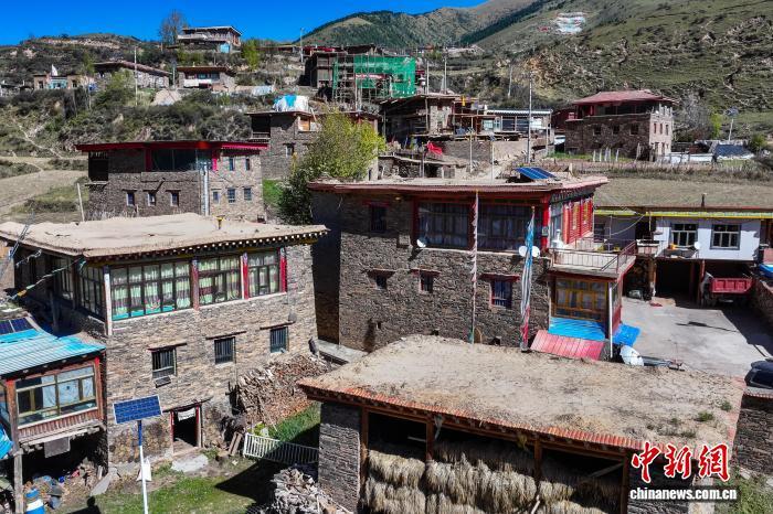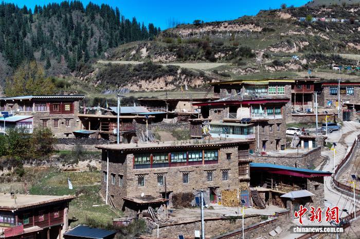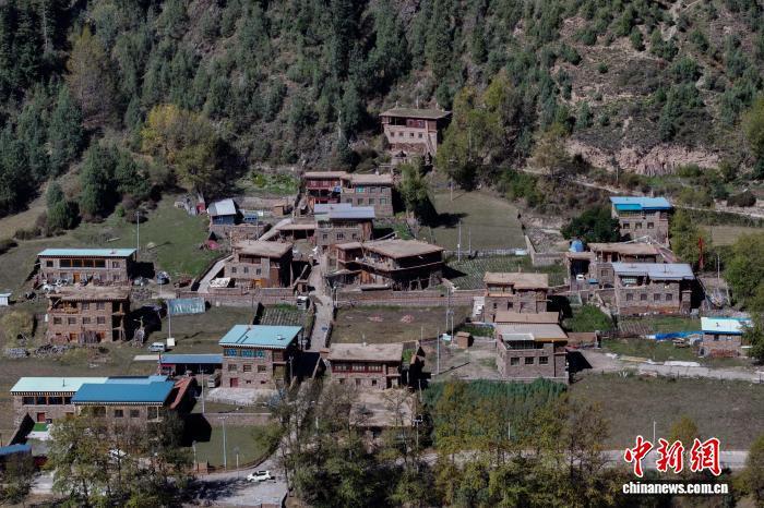 10月16日,航拍青海省果洛藏族自治州班瑪縣境內(nèi)的藏式碉樓群落。(無人機(jī)照片)中新社記者 馬銘言 攝