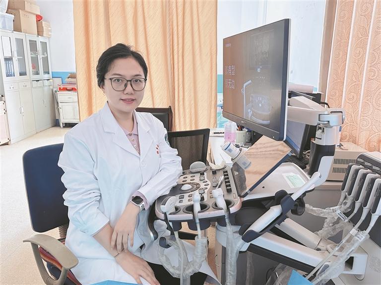 來自清華大學(xué)玉泉醫(yī)院超聲科的援青隊(duì)員杜晶醫(yī)生調(diào)試儀器中。