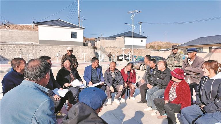 在新建的廣場(chǎng)上,侯家莊村村委會(huì)主任裴延成和沙溝鄉(xiāng)副鄉(xiāng)長(zhǎng)馬玉海喊道:“鄉(xiāng)親們,過(guò)來(lái)開(kāi)個(gè)會(huì)!”不一會(huì)兒,附近的村民紛紛放下手中的活計(jì),都聚攏了過(guò)來(lái)。大家樂(lè)呵呵地圍坐在一起。