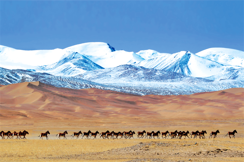 昆侖山下,藏野驢自由奔馳。海西州文體旅游廣電局供圖