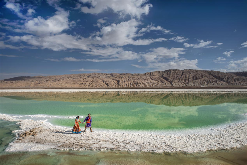 游客定格茶卡鹽湖美景。海西州文體旅游廣電局供圖