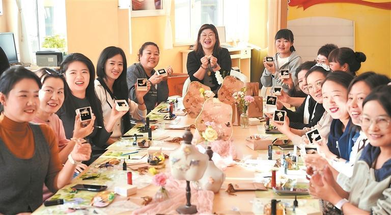 西寧市城西區(qū)興海路街道組織在石榴籽書(shū)屋開(kāi)展螺鈿非遺制作體驗(yàn)。
