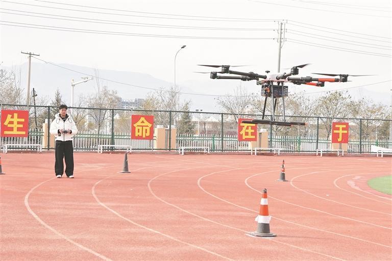 教員在測試無人機。記者 牛玉嬌 韓麗萍 攝