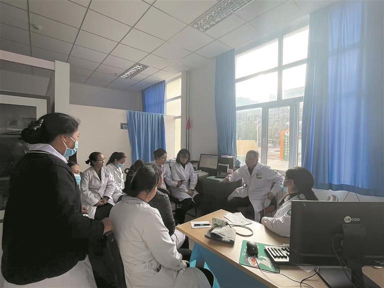 在囊謙縣人民醫(yī)院的遠(yuǎn)程會診中心內(nèi),梁海峰正帶著院里的骨干醫(yī)生與首都醫(yī)科大學(xué)附屬復(fù)興醫(yī)院進(jìn)行一場跨越千里的“云端”培訓(xùn)。培訓(xùn)結(jié)束后,顧不上休息,梁海峰又快步來到內(nèi)科診室,此時門外已有很多等候的患者。