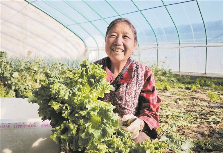 巴音河西村的變化,不止是村民住進(jìn)新樓房,產(chǎn)業(yè)更是發(fā)生了翻天覆地的變化。2022年起,老村原址上建起46座現(xiàn)代化大棚,冬日走進(jìn)大棚,滿眼都是生機(jī)盎然的綠色。村民李長(zhǎng)財(cái)家的大棚里,老兩口正忙著采收生菜,棚內(nèi)的蘿卜、小油菜、甘藍(lán)、蒜苗等也長(zhǎng)勢(shì)喜人。