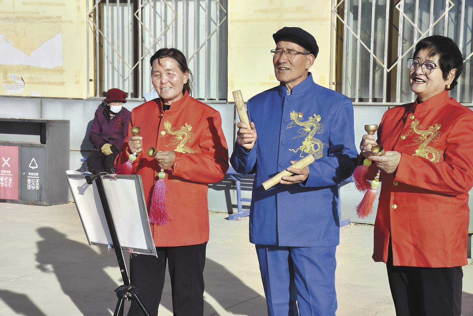 12月17日上午,記者來到位于國道109旁的上灘東村,看到幾位老人圍坐在一起,有人拉著板胡,有人彈著三弦,正聲情并茂地唱著。領(lǐng)唱的老人叫山永寶,今年71歲,是隊(duì)里的臺(tái)柱子,也是一名老黨員。