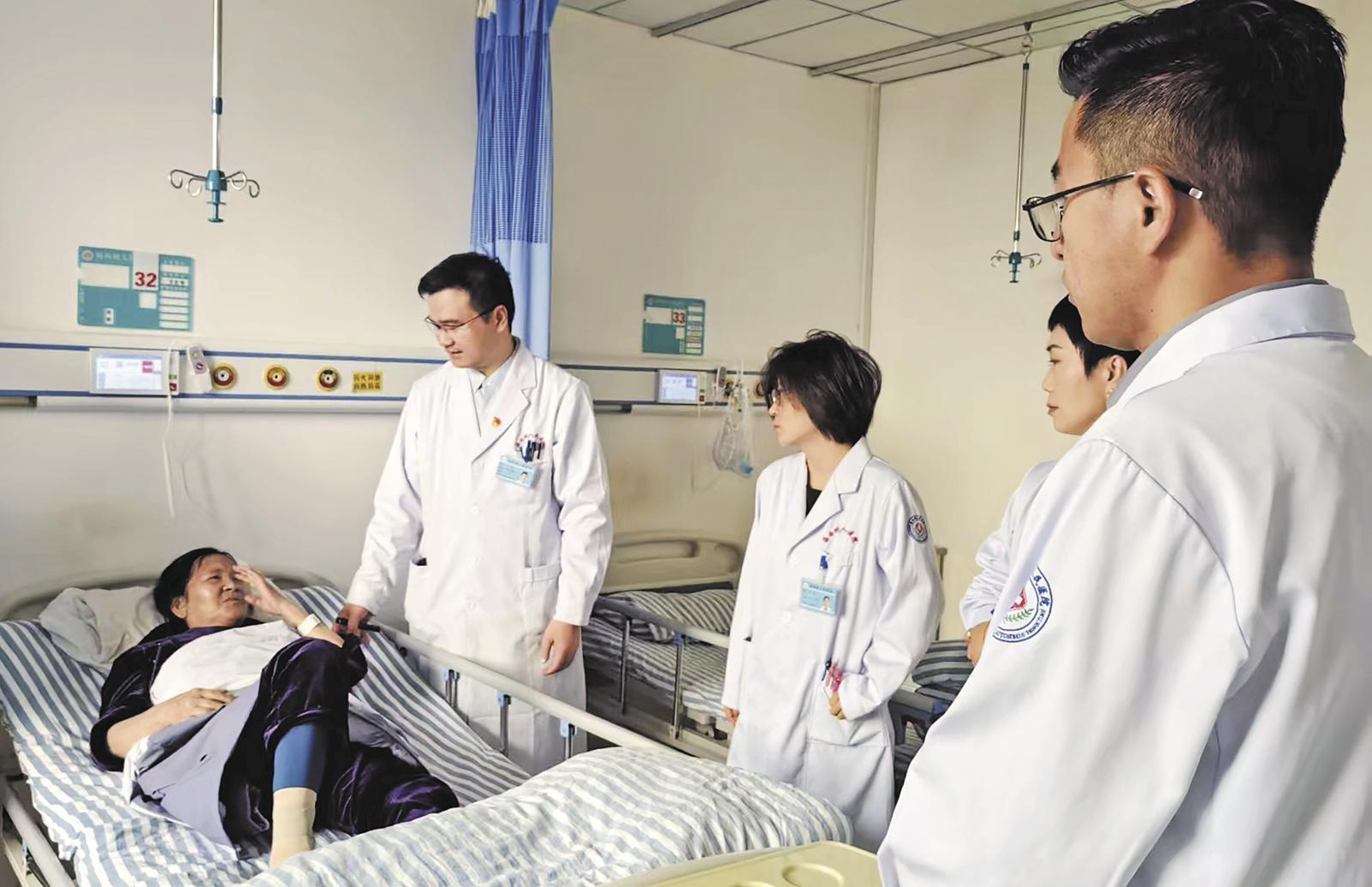 劉輝(右四)帶領(lǐng)科室醫(yī)生查房。海西州人民醫(yī)院供圖