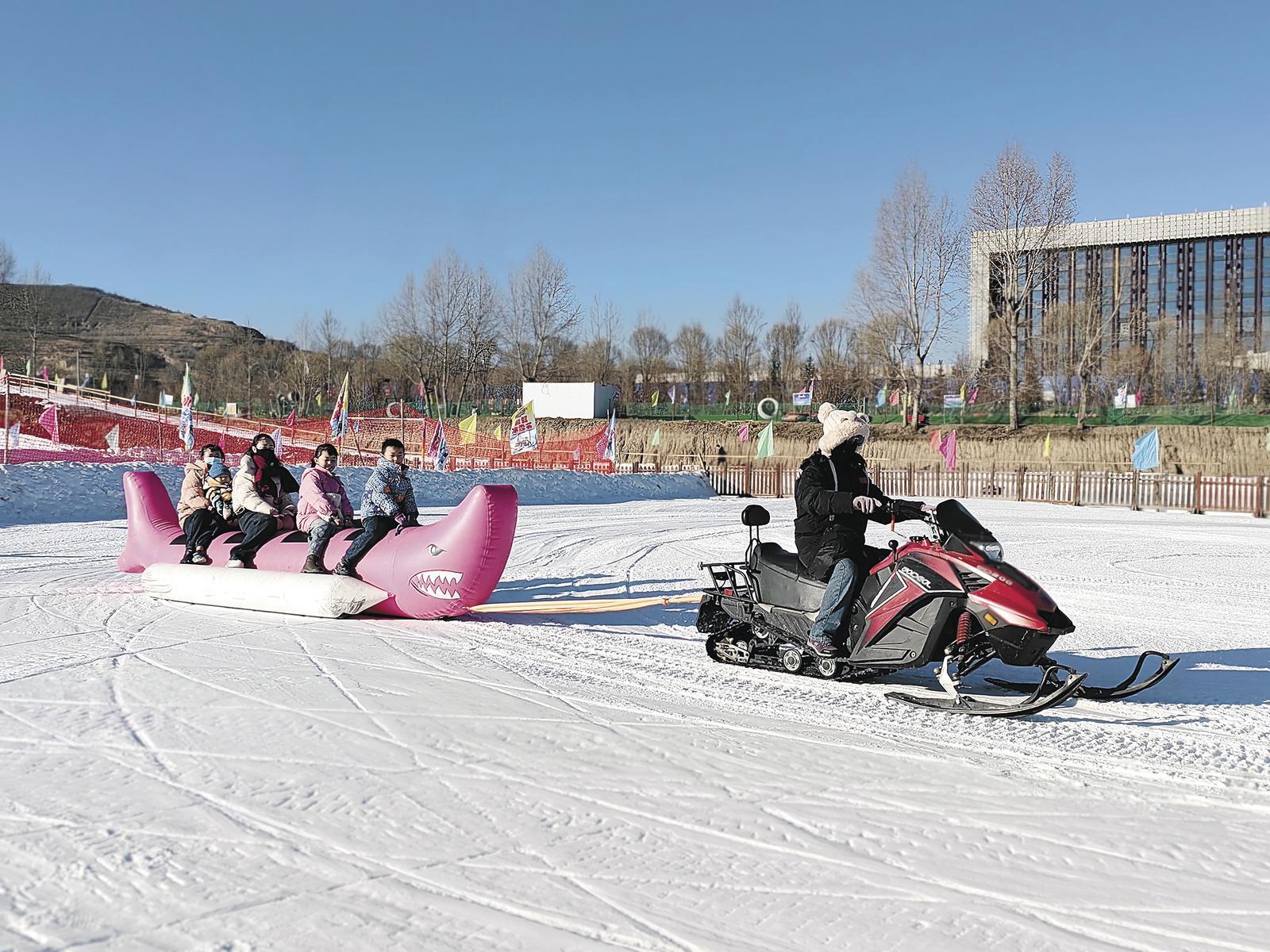 游客在滑雪場(chǎng)游樂(lè)。記者 牛玉嬌 攝