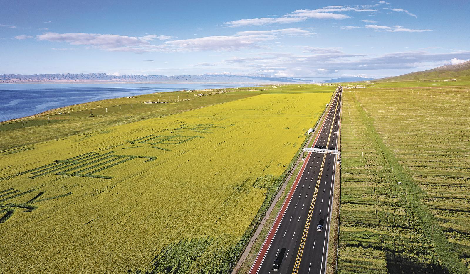 高速公路穿越美麗的油菜花海。記者 李娜 魏雅琪 攝