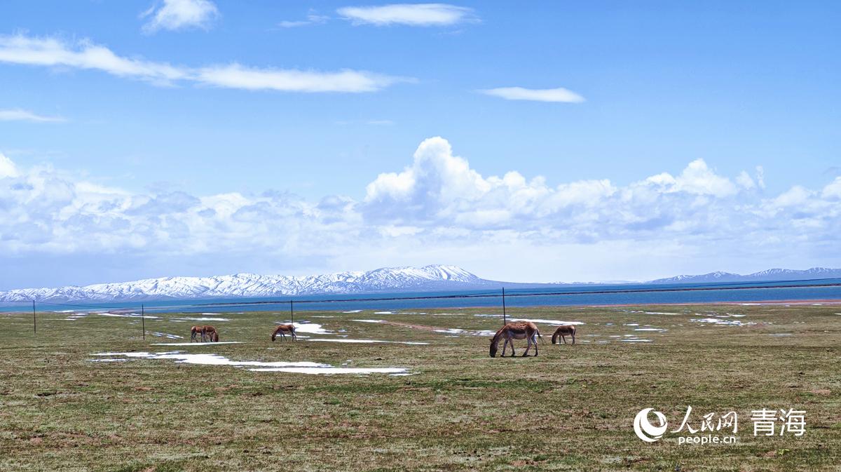 三江源國家公園黃河源園區(qū)內(nèi),藏野驢正覓食。人民網(wǎng)記者 楊啟紅攝