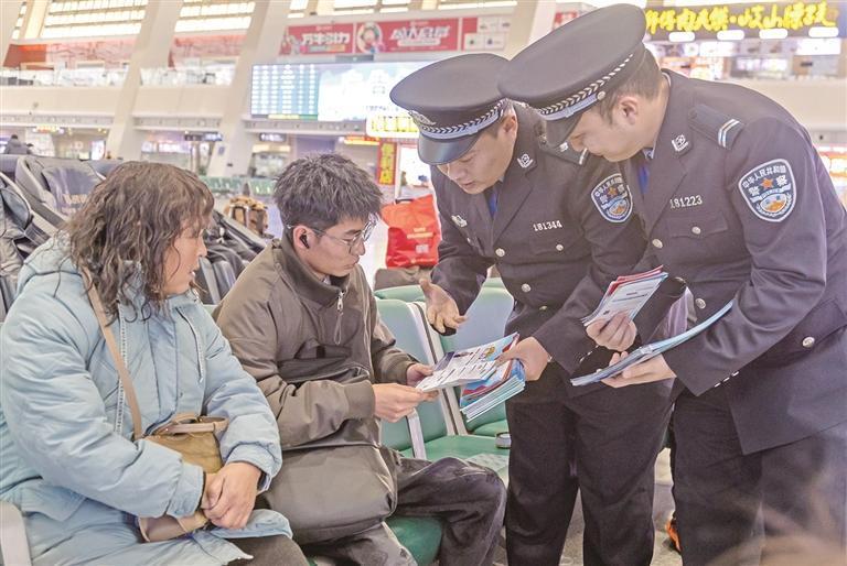 此外,民警聯(lián)合銀行工作人員,通過(guò)發(fā)放反詐宣傳單、現(xiàn)場(chǎng)講解典型案例等方式,向旅客揭露購(gòu)票詐騙、虛假退票、冒充客服退款等常見(jiàn)電信詐騙手段的作案套路,重點(diǎn)提醒旅客在購(gòu)票、進(jìn)站、乘車(chē)等各個(gè)環(huán)節(jié)提高警惕,守護(hù)好自己的“錢(qián)袋子”。