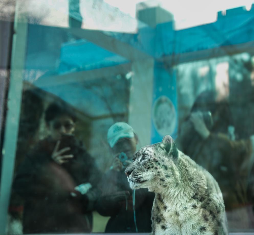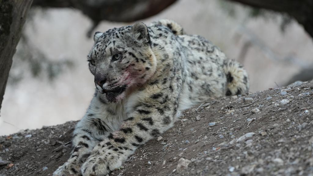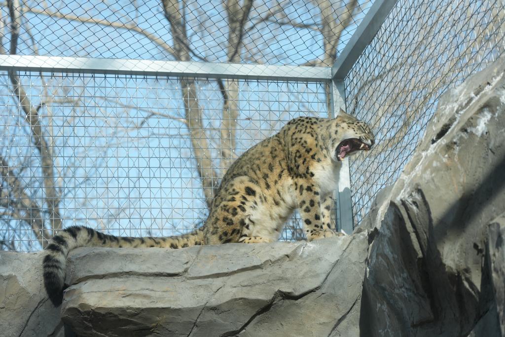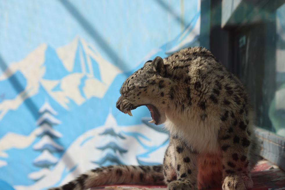 2025年3月被救護的雪豹“凌小蟄”在雪豹館內(nèi)嘶吼。