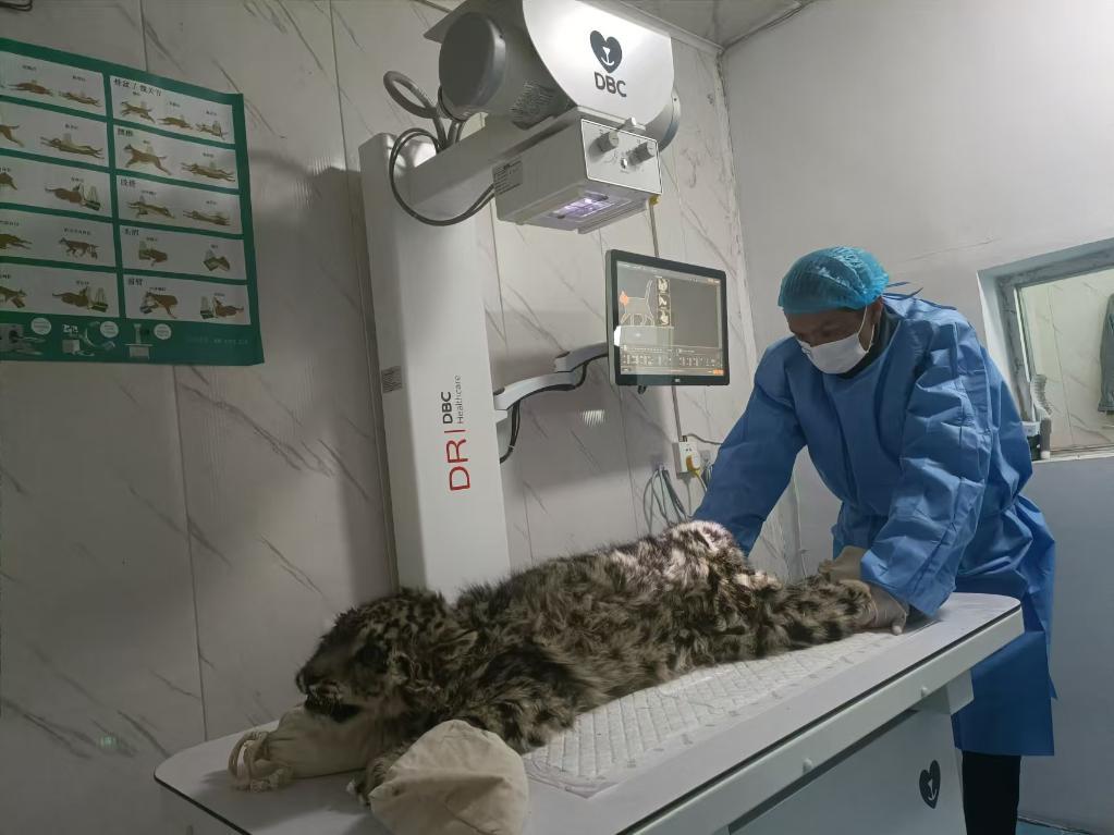 雪豹“凌小蟄”接受醫(yī)療檢查。