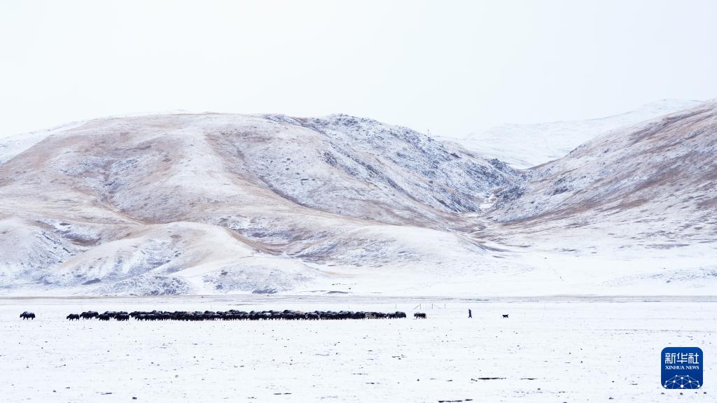 1月29日,牧民在青海省玉樹藏族自治州雜多縣境內(nèi)的草原上放牧。新華社記者 齊芷玥 攝