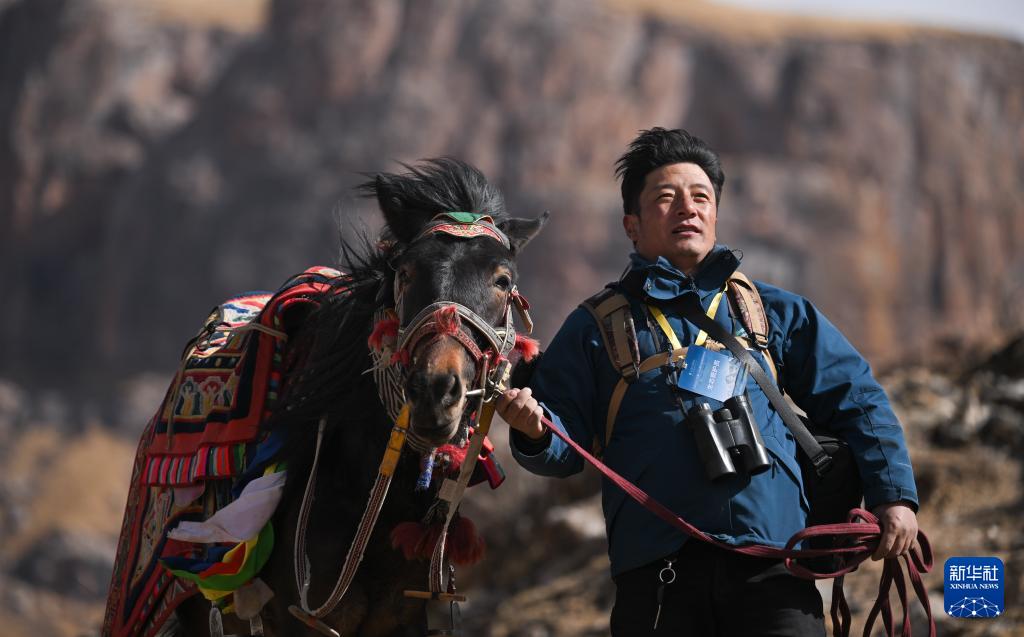 1月29日,次?。ㄓ遥┖透卦谇嗪J∮駱洳刈遄灾沃蓦s多縣昂賽鄉(xiāng)巡護(hù)。新華社記者 齊芷玥 攝