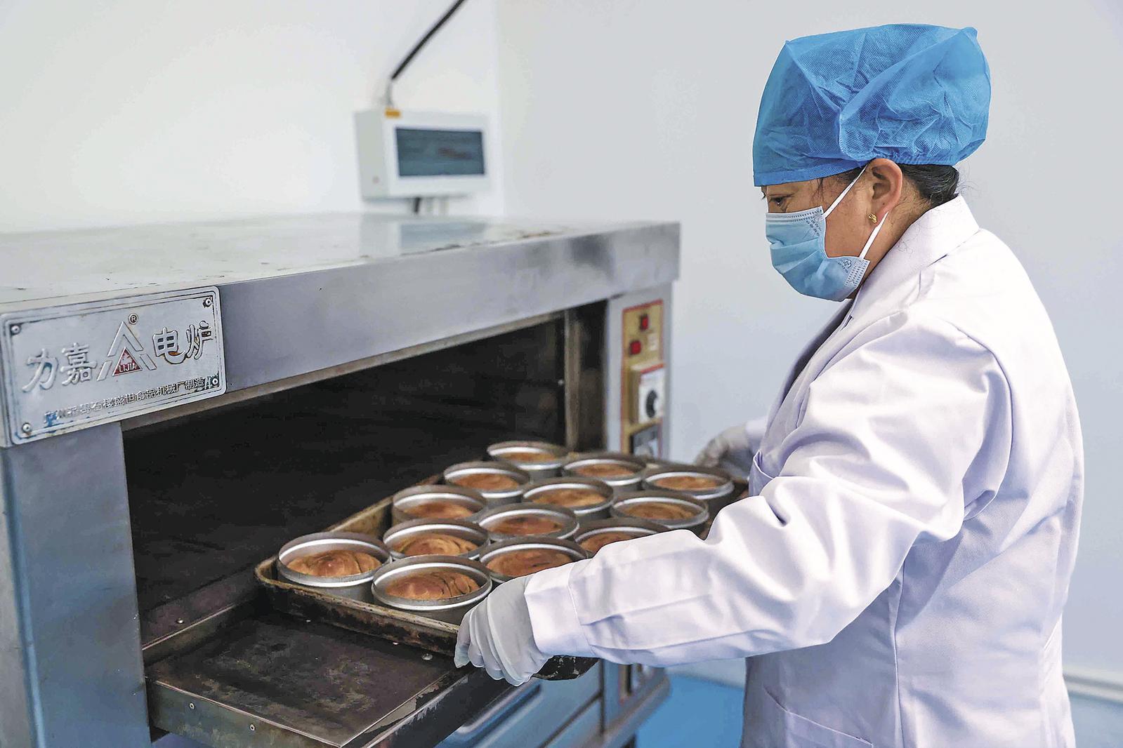 2月4日,西寧市大通回族土族自治縣新莊鎮(zhèn)臺其莊村的青海鑫盛農(nóng)副產(chǎn)品加工有限公司車間內(nèi),暖意融融、香氣四溢。切配、攪拌、塑形、烘烤,工人有條不紊地忙碌著,一塊塊金黃飽滿的菊芋餅在流水線上逐漸成型,空氣中彌漫著菊芋獨(dú)有的清甜與麥香。臺其莊村村民祁占才額角滲著細(xì)汗,臉上卻掛著滿足的笑意:“在家門口上班,每天能掙150塊,馬上過年了,剛好掙了錢給家里人買新衣,開開心心過大年?!?/p>