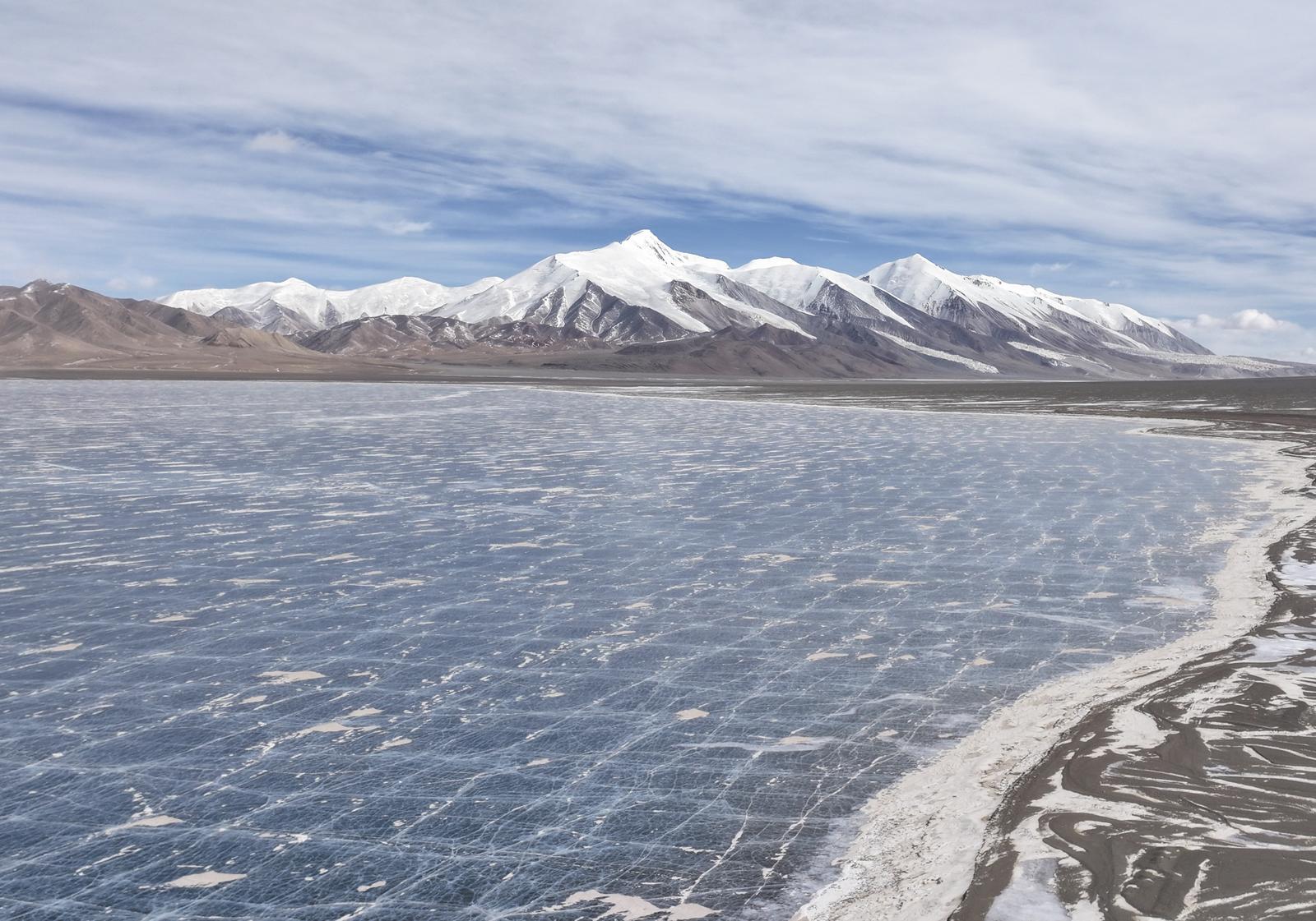 早飯是熱奶茶和白餅。茶灌進(jìn)肚子,寒意才真正被壓下去。車隊(duì)出發(fā),朝勒斜武旦湖方向行進(jìn)。下午1時(shí)許,遠(yuǎn)遠(yuǎn)望見一片開闊的冰面,太陽湖到了。