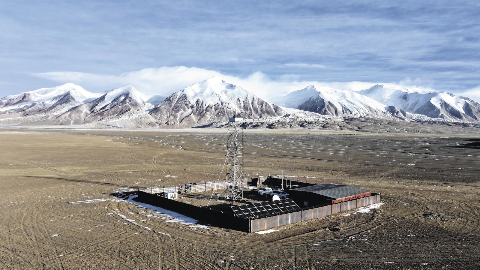 2月7日清晨,天色剛亮,我就從睡袋里鉆出來。一夜無眠,太陽穴還隱隱發(fā)脹,心里卻惦記著要拍布喀達(dá)坂峰的日出。推門而出,冷氣像刀子一樣撲過來。院子里整齊鋪著光伏電板,角落立著一座二十多米高的瞭望塔——站在塔頂能望見布喀達(dá)坂峰全貌,可在院里,只能看到山尖。