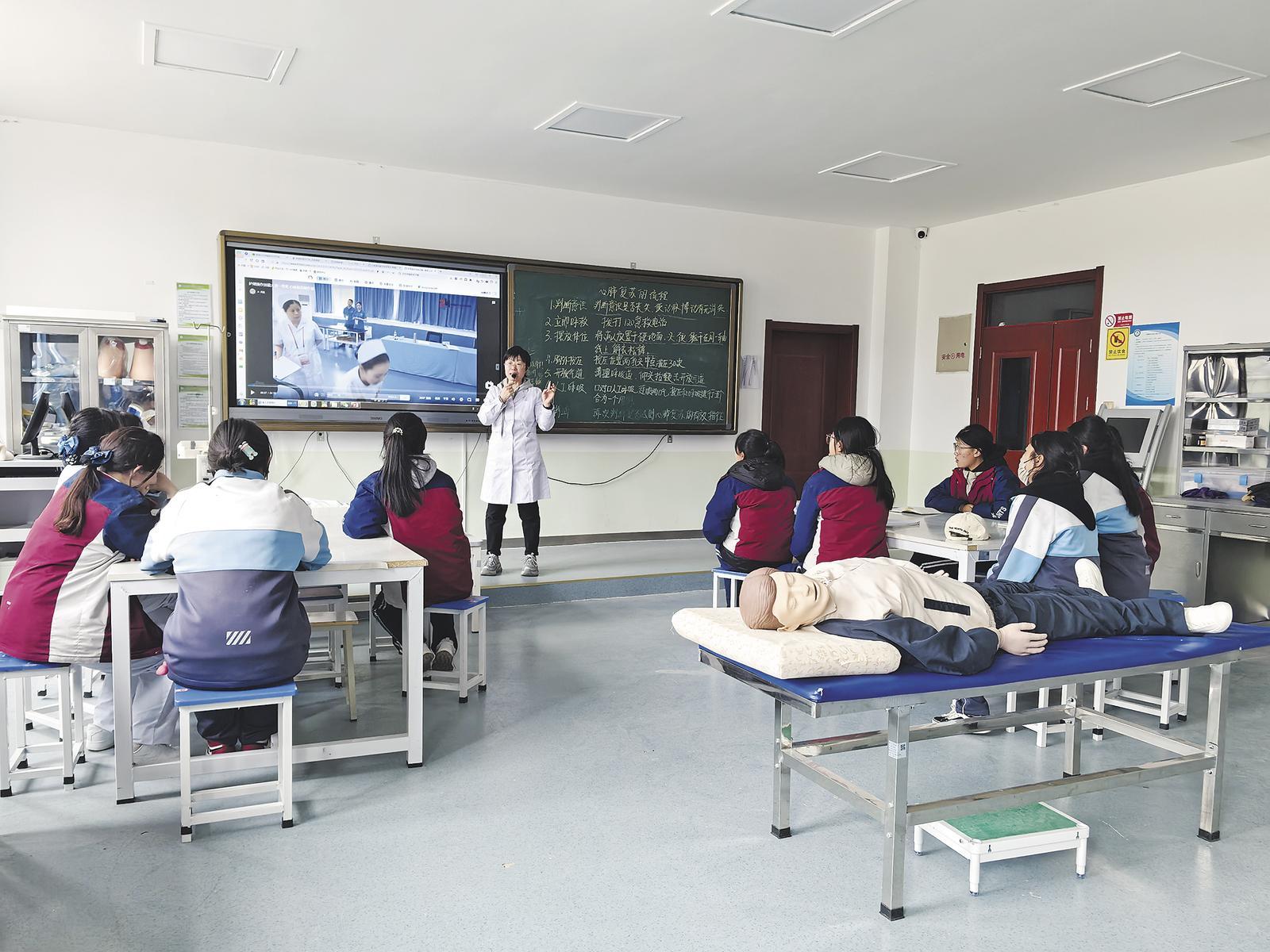 “按壓深度5-6厘米,頻率100-120次/分,兩分鐘完成五個(gè)循環(huán)!”3月9日,玉樹藏族自治州職業(yè)技術(shù)學(xué)校護(hù)理實(shí)訓(xùn)室里,北京援青教師張慧英屈膝俯身,雙手交疊按壓在模擬人胸前,目光專注,“這個(gè)節(jié)奏里藏著生命密碼,高原上的每一次搶救都容不得半點(diǎn)馬虎?!?/p>