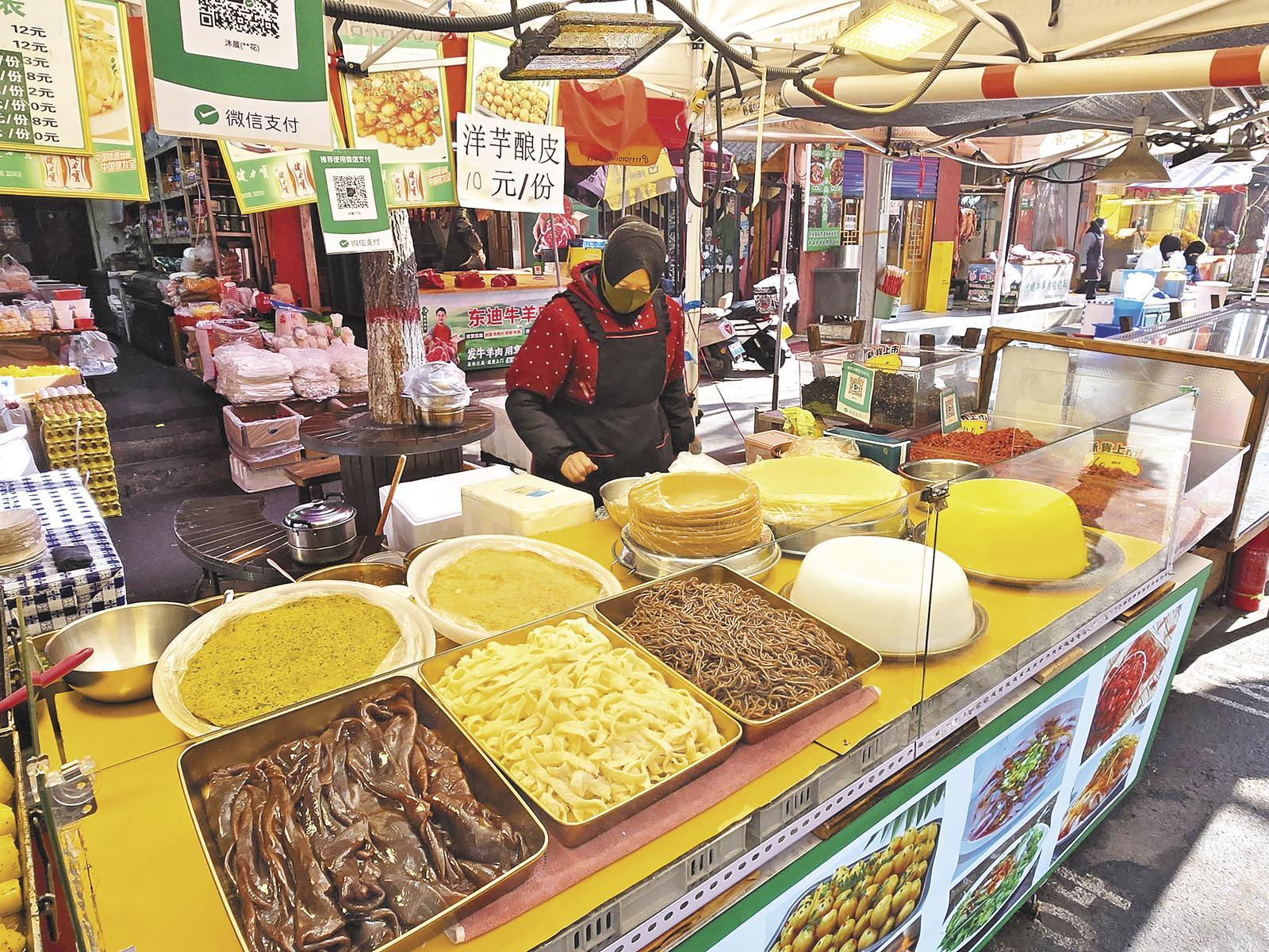 下南關(guān)步行街里的釀皮攤位。記者 馬振東 攝