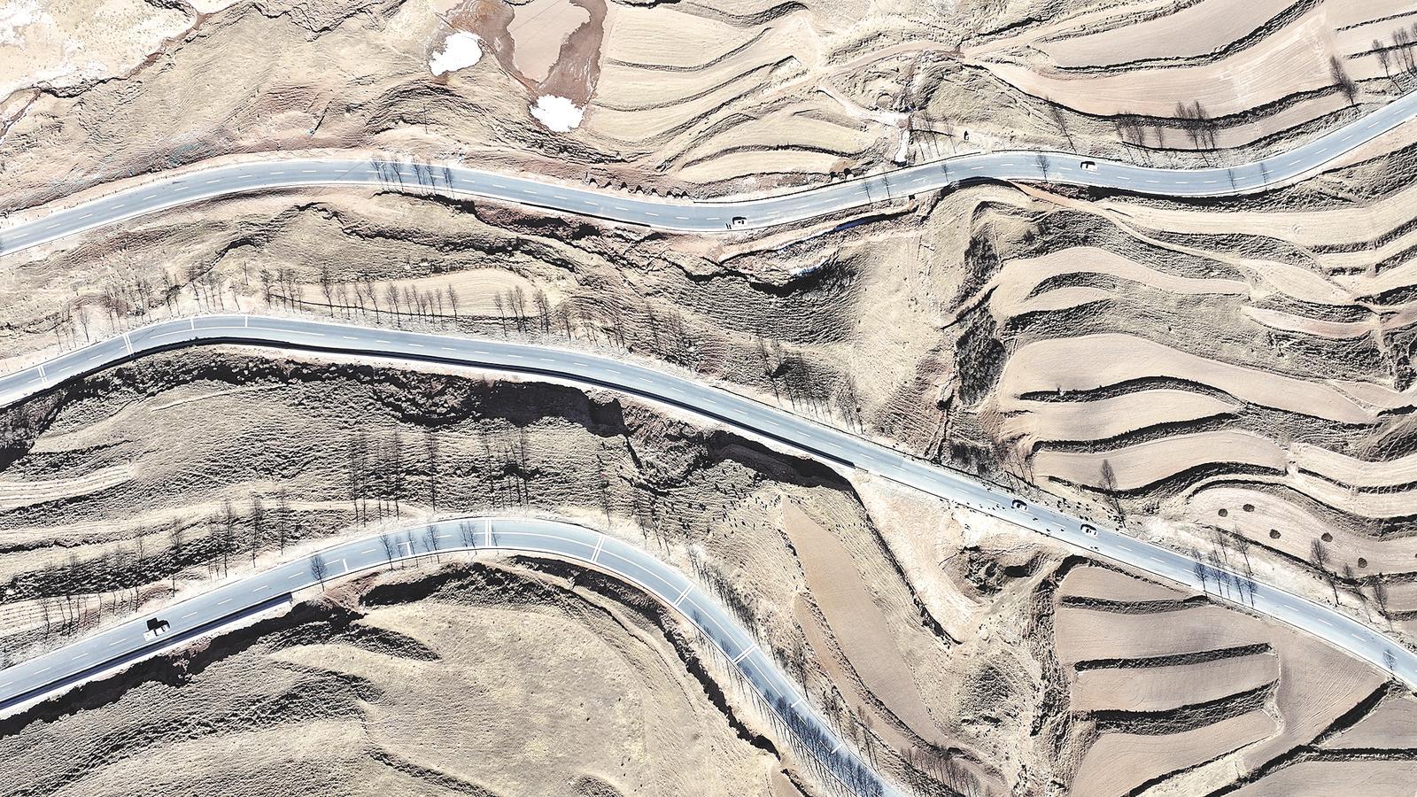 3月9日,沿著化隆回族自治縣新修建的省道306官哈公路燕官段行駛,道路兩旁草木萌發(fā)。從高空俯瞰,柏油路如游龍盤(pán)踞山間,連接起城市與鄉(xiāng)村的繁華與寧?kù)o,又如飄逸的絲帶,帶出土特產(chǎn),帶進(jìn)新希望。