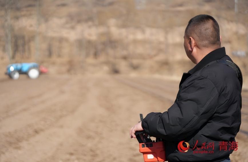 種植戶操作無(wú)人整地機(jī)。人民網(wǎng)記者 甘海瓊攝