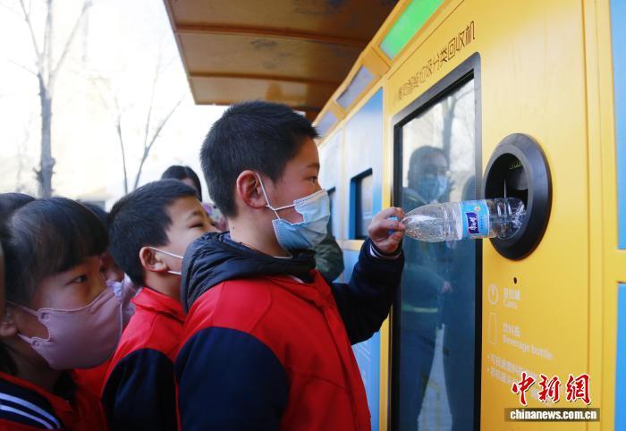 資料圖為青海省西寧市三其小學(xué)學(xué)生將塑料瓶投放到智能垃圾分類回收機(jī)中。馬銘言 攝