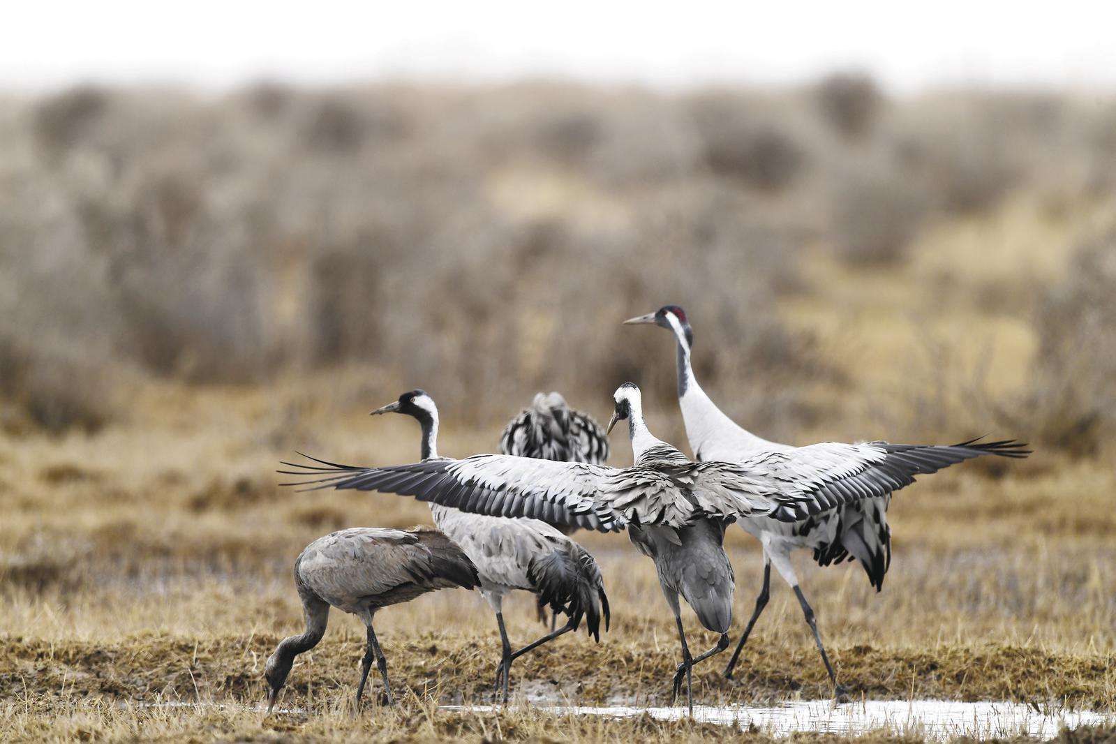 每年3月初,灰鶴遷徙途中會在都蘭縣巴隆鄉(xiāng)的濕地停留休憩,覓食補充體力。每批停留約10天,遷徙季持續(xù)一個月左右,總數(shù)可達上萬只。