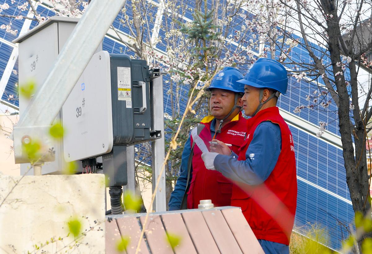 國(guó)網(wǎng)海東供電公司五十供電所員工在班彥新村開展安全用電大檢查,對(duì)村中的光伏電站設(shè)備進(jìn)行隱患排查。李永鵬攝