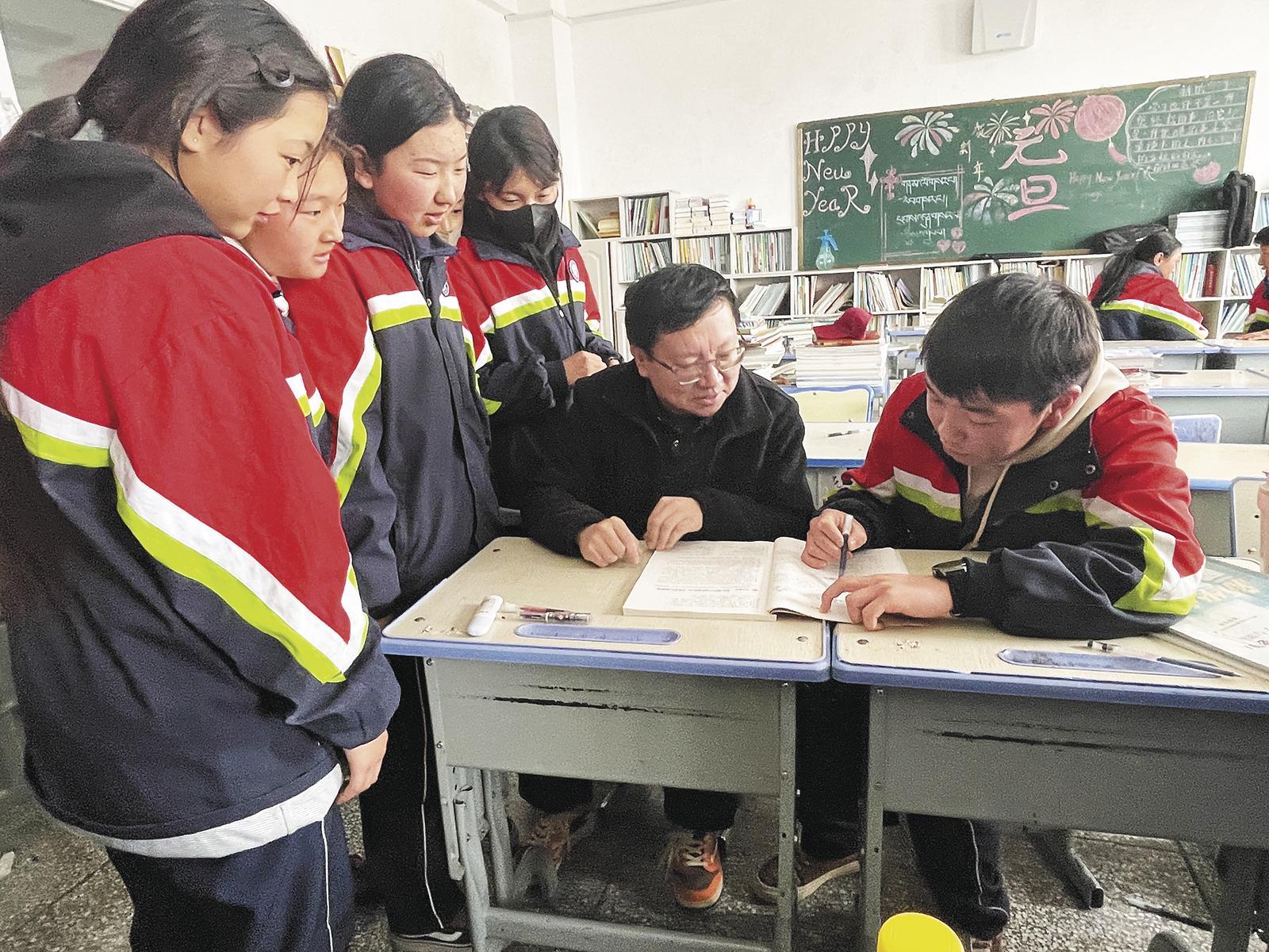 課間輔導(dǎo),解疑釋惑。記者 祁萬強(qiáng) 攝