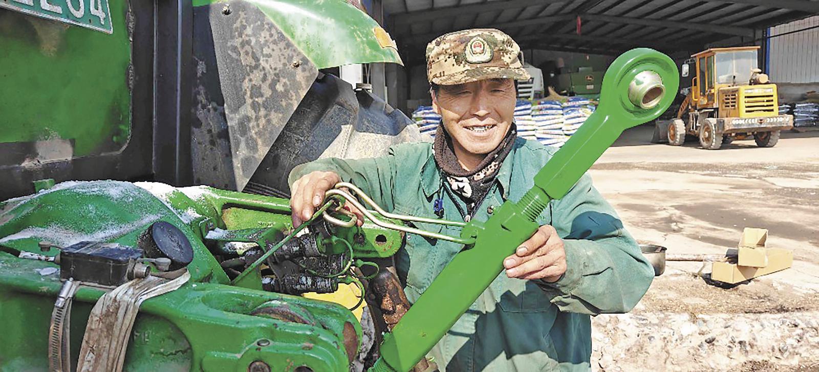“再過十來天就要下地了,得把這些‘鐵?!藕蚝??!奔易”鄙洁l(xiāng)下金巴臺村的農(nóng)機(jī)手王萬壽,從一臺拖拉機(jī)的駕駛室探出頭來,黝黑的臉上掛著汗珠。去年這會,他還在四處找零活干;而今,他已是持有農(nóng)機(jī)駕駛證的熟練機(jī)手,即將駕駛這臺“鐵?!?,開啟又一個春耕季。