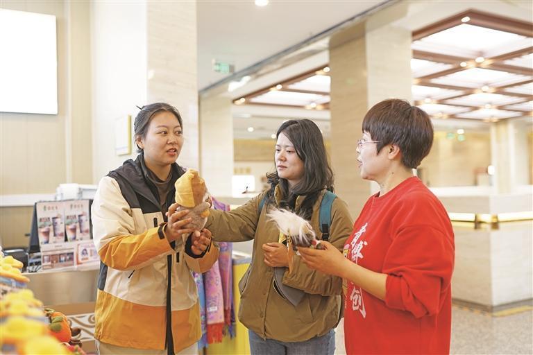 游客選購毛絨文創(chuàng)產(chǎn)品。