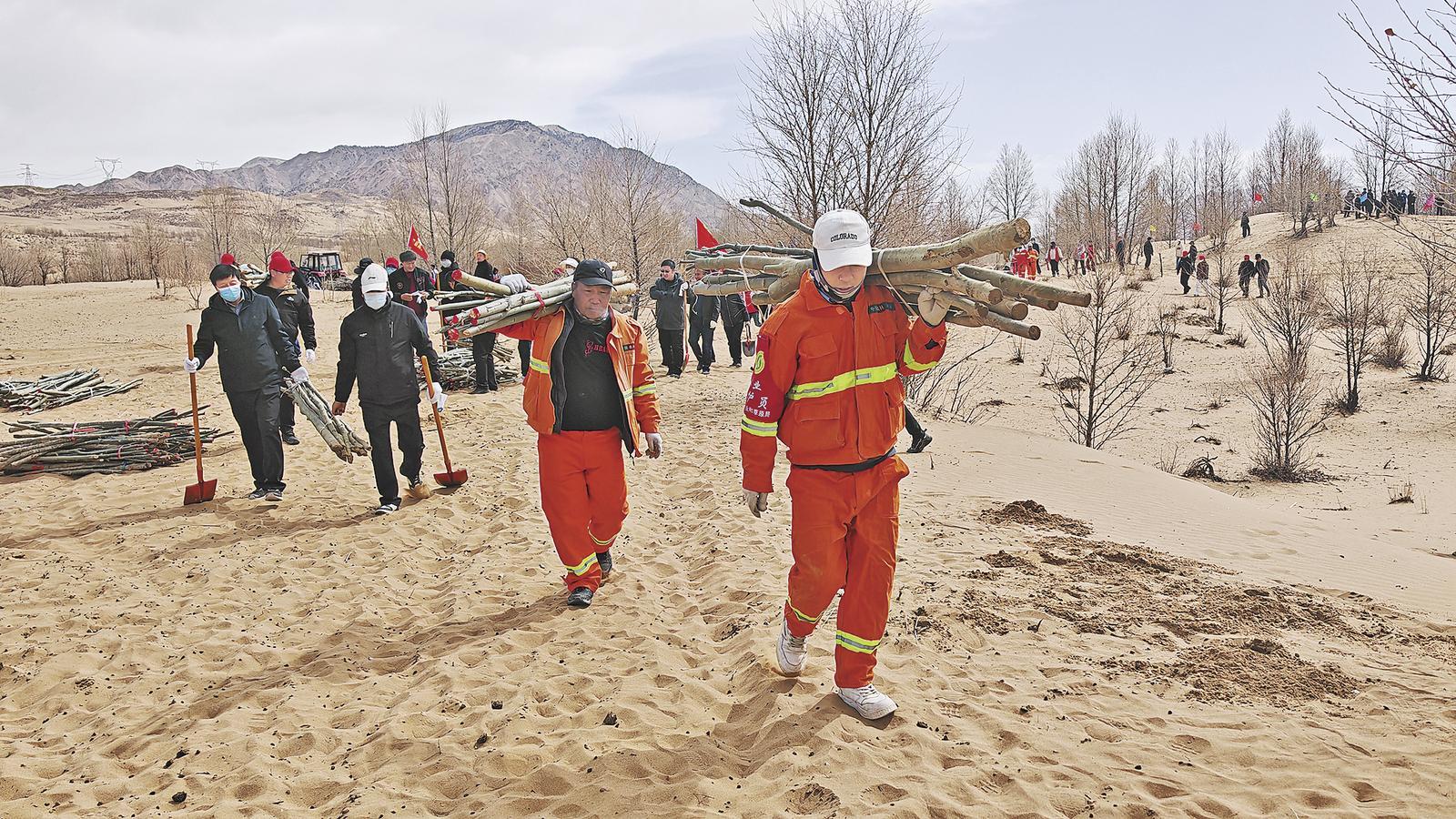 大家心里都有明確目標(biāo):必須趕在高原暖春徹底到來(lái)前,完成全部工程固沙任務(wù),為后續(xù)生物治沙、植樹(shù)造林搶時(shí)間、占先機(jī)。