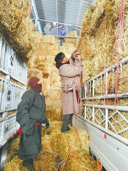 尼作(前排右)幫村民卸草料。紅原縣委宣傳部供圖