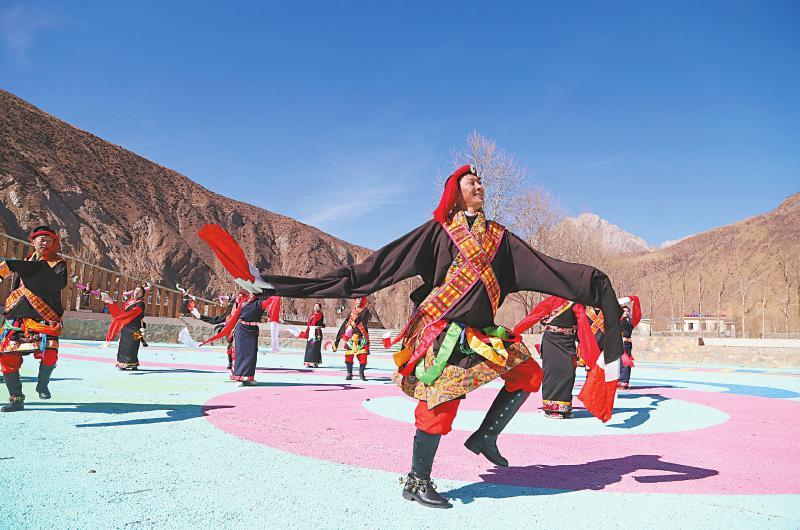“來!我們再來一遍,兩個節(jié)目連排,拿足氣勢,跳出勁頭!”雙擁大吼一聲,男女隊員迅速歸位、整齊列隊。悠揚的伴奏響起,長袖凌空劃出弧線,舞步踏響青春節(jié)拍。豐收之后,農(nóng)閑之時,迎春之日,鄉(xiāng)親們歡聚一堂、載歌載舞,這熱鬧祥和的場景,便是高原上最動人、最美好的時光。