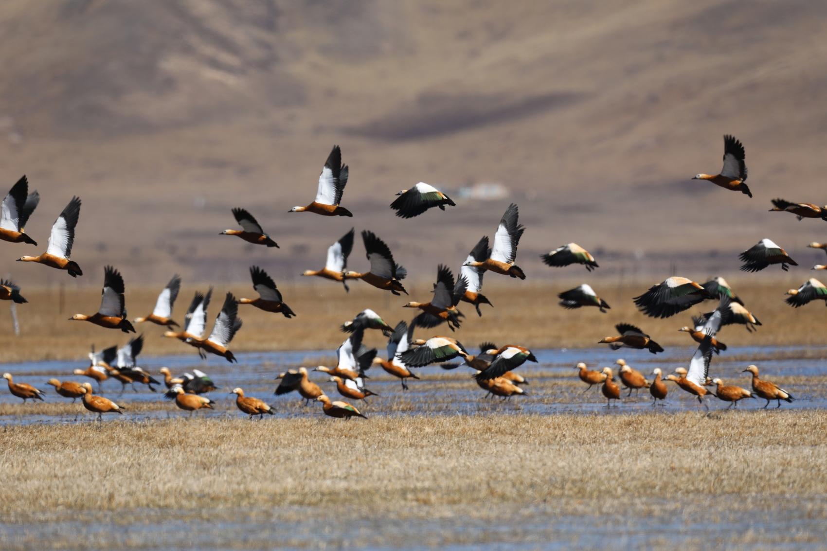 鳥類在黃河棲息(資料圖)。若爾蓋縣委宣傳部供圖