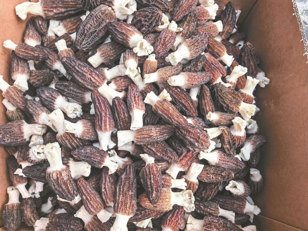 整理好準(zhǔn)備售賣(mài)的羊肚菌。 李易熹 攝