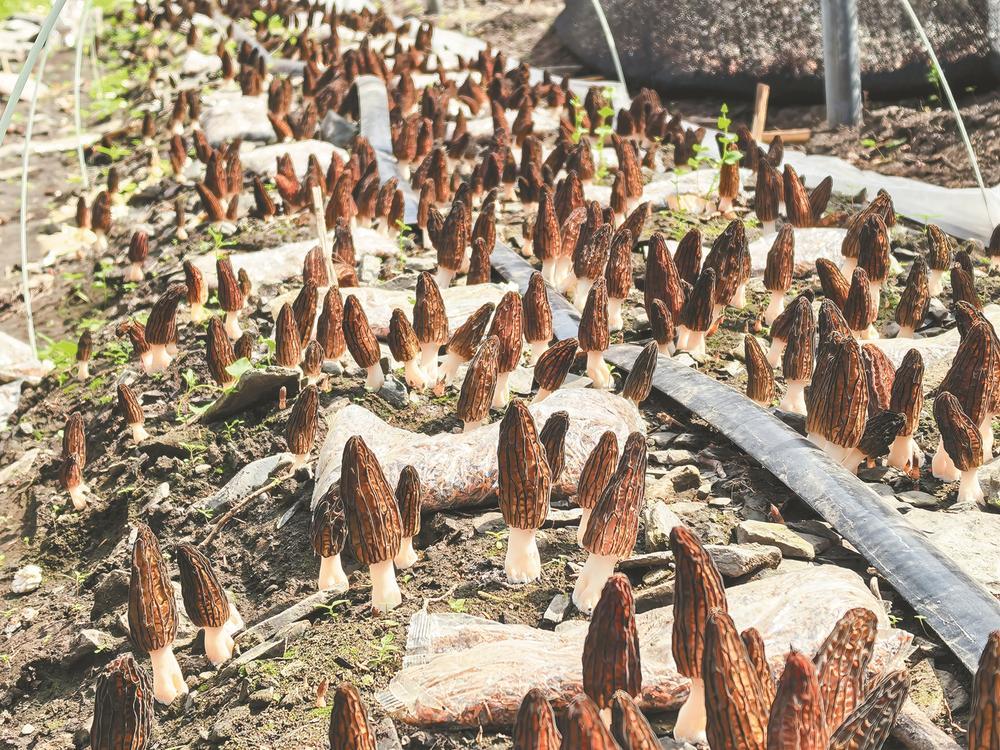 “第一年種得不多,才兩畝多地,第二年又增加了10畝,然后慢慢就增加多了?!毙鞚煽貞浀溃衲晔撬N植羊肚菌的第七個(gè)年頭,“今年,我們基地流轉(zhuǎn)德威鎮(zhèn)堡子村和咱威村共計(jì)68畝土地用于羊肚菌種植,預(yù)計(jì)畝產(chǎn)可達(dá)150公斤左右,畝產(chǎn)值15000元?!?/p>