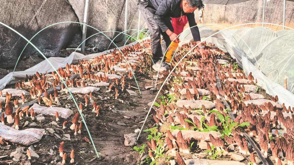 村民正在采摘羊肚菌。 李易熹 攝