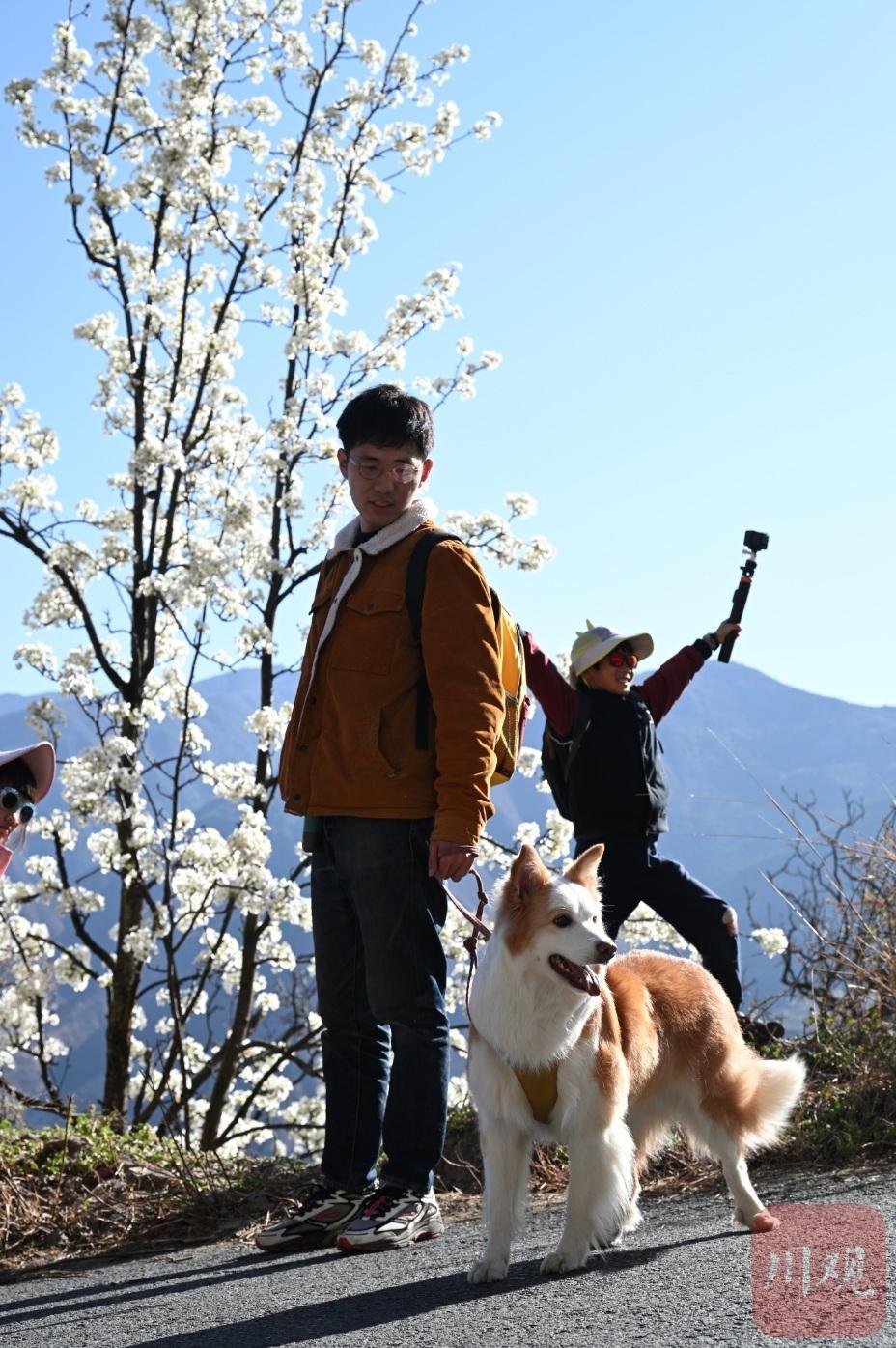 游客攜寵打卡梨花。
