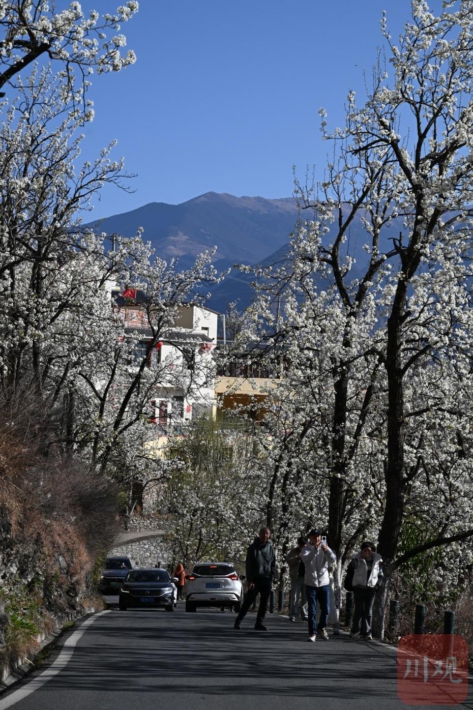 中國藏族網(wǎng)通訊 3月22日,四川省阿壩藏族羌族自治州金川縣萬畝古樹梨花次第綻放,雪白花海綿延百余公里,與河谷、村寨、雪山相映,構(gòu)成高原春日盛景。梨花大道、神仙包、沙耳音樂廣場(chǎng)……不少游客專程趕來打卡這抹川西北高原的春色,用鏡頭珍藏這一樹梨花。