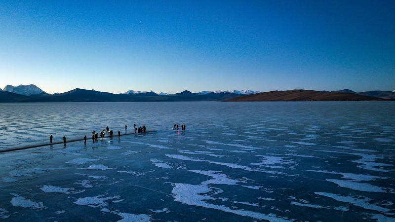 推瓦村位于山南市浪卡子縣打隆鎮(zhèn),海拔超過(guò)5000米,是世界海拔最高行政村之一,這個(gè)遺世獨(dú)立的小村莊,就坐落在風(fēng)景絕美的普莫雍措湖畔。普莫雍措被譽(yù)為“仙女之淚”“中國(guó)的貝加爾湖”,每年冬季,湖面結(jié)冰,冰面通透可見(jiàn)湖底,在陽(yáng)光的照射下,呈現(xiàn)出動(dòng)人心魄的藍(lán)冰。而此時(shí),也是推瓦村羊群轉(zhuǎn)場(chǎng)的最佳時(shí)節(jié)。