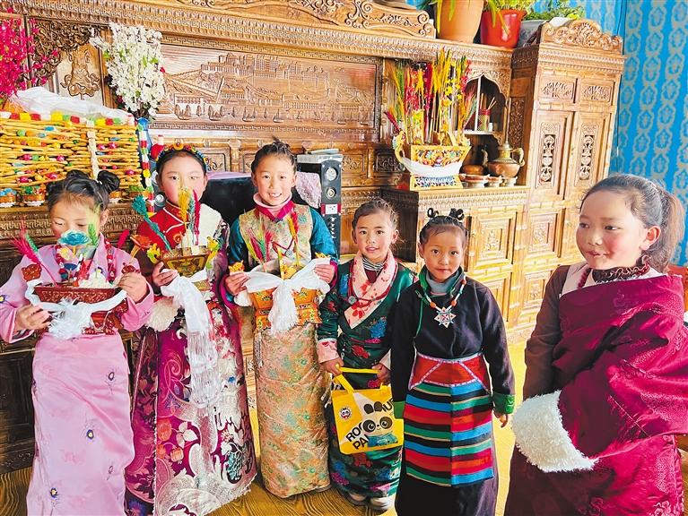 首頁(yè) / 新聞 / 涉藏新聞 / 西藏 / 正文 鄉(xiāng)村里的歡聚 來(lái)源 : 西藏日?qǐng)?bào) 作者 : 央金 發(fā)布時(shí)間 : 2025-03-04 字體 :小 中 大 圖為來(lái)自拉薩的諾宗(左)在崔久鄉(xiāng)吃"切瑪"。本報(bào)記者 央金 攝圖為崔久鄉(xiāng)小朋友們帶著"切瑪"來(lái)到村民家中?!”緢?bào)記者 央金 攝藏歷新年期間,在山南市加查縣崔久鄉(xiāng),身著藏裝的小朋友們帶著家人準(zhǔn)備的"切瑪",前往村民家中請(qǐng)大家吃寓意五谷豐登的"切瑪"。 編輯 : 桑結(jié)加