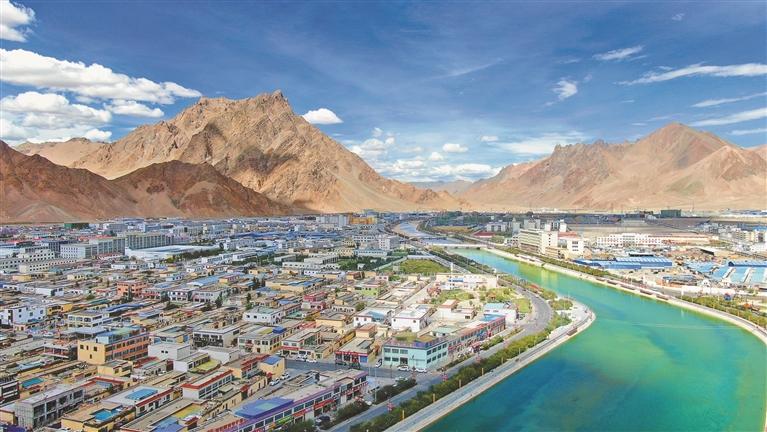 圖為綠意環(huán)繞的獅泉河鎮(zhèn)?!”緢笥浾摺÷迳5┰觥∵_(dá)珍 永青 攝
