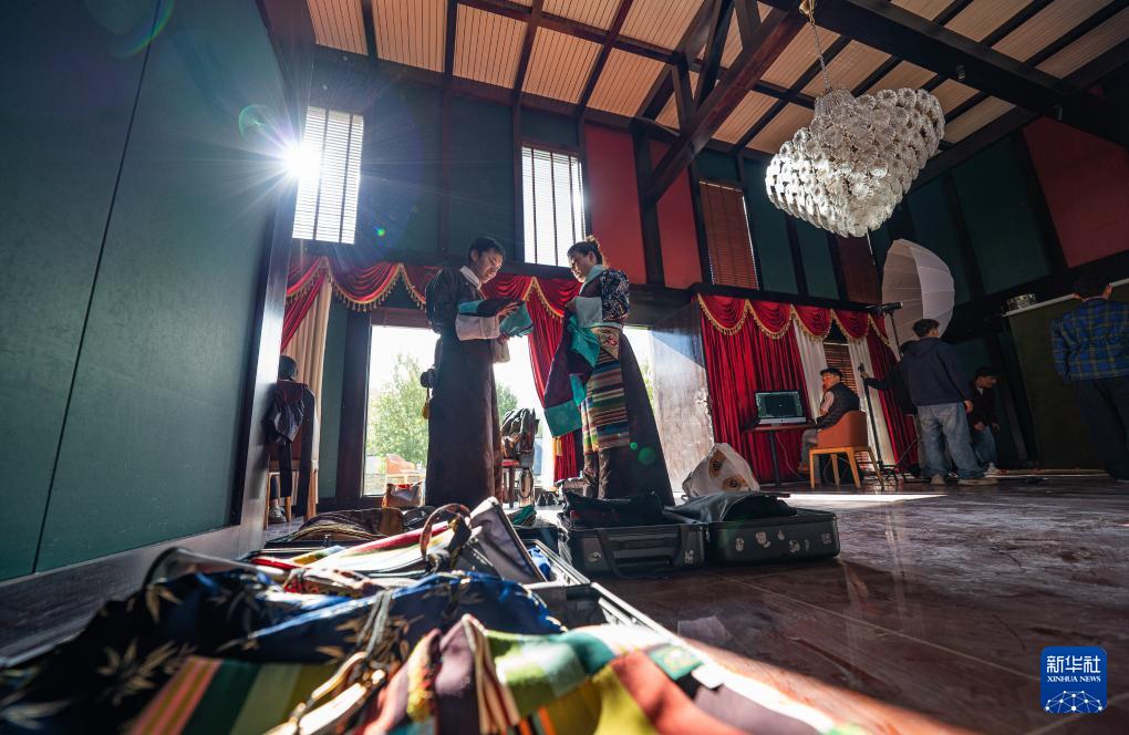 班珠丹塔身著藏裝進行棚拍(9月9日攝)。新華社記者 丁增尼達 攝
