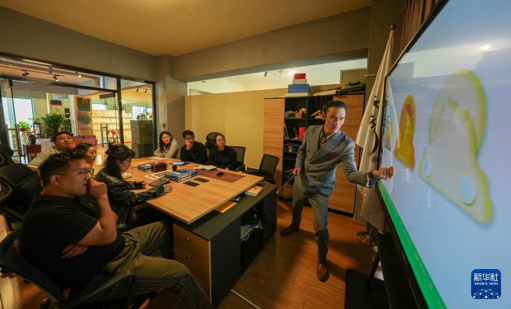 29歲的扎西巴單是西藏雅闊熱品牌設(shè)計有限公司的創(chuàng)始人。近年來,他帶領(lǐng)團隊開發(fā)出大量藏文化主題的擺件、掛畫和冰箱貼等產(chǎn)品,深受市場歡迎。扎西巴單形容自己“像一座橋”,連接西藏本地藝術(shù)家和外部市場。他與本地藝術(shù)家合作,承擔產(chǎn)品研發(fā)成本,在尊重藝術(shù)家原創(chuàng)性的同時,在配色、結(jié)構(gòu)等環(huán)節(jié)提供建議。他還通過短視頻、直播等方式推廣產(chǎn)品,使文創(chuàng)產(chǎn)品走向更廣闊的市場。
