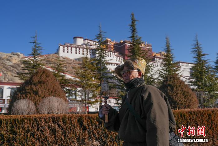 1月14日,雪域高原進入農(nóng)閑季,西藏及各地藏傳佛教信眾齊聚拉薩,圍繞布達拉宮、大昭寺等地排起長龍,轉(zhuǎn)經(jīng)朝拜、虔誠禮佛,為眾生祈福,祈求風調(diào)雨順。圖為信眾圍繞布達拉宮轉(zhuǎn)經(jīng)。貢確 攝