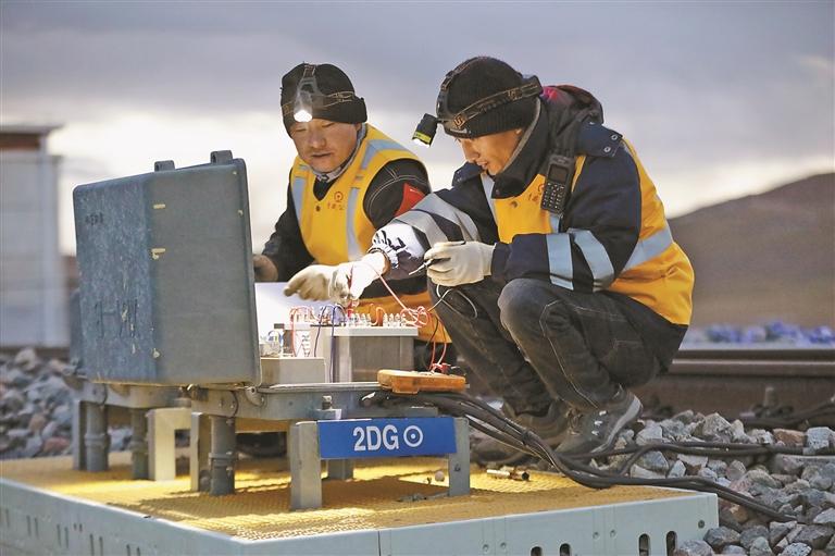 圖為近日,中國鐵路青藏集團有限公司拉薩基礎設施段那曲信號車間扎加藏布信號工區(qū)職工在對信號機進行電氣特性測試及數據記錄。本報記者 旦增蘭澤 本報通訊員 拉巴次仁 攝