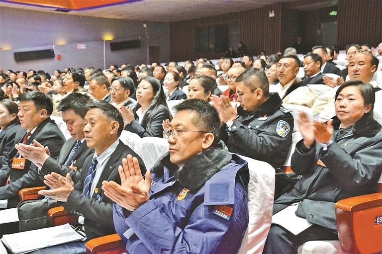 那曲市第二屆人民代表大會(huì)第七次會(huì)議開幕會(huì)上,與會(huì)人員在聆聽政府工作報(bào)告過程中,不時(shí)熱烈鼓掌。記者 汪純 攝
