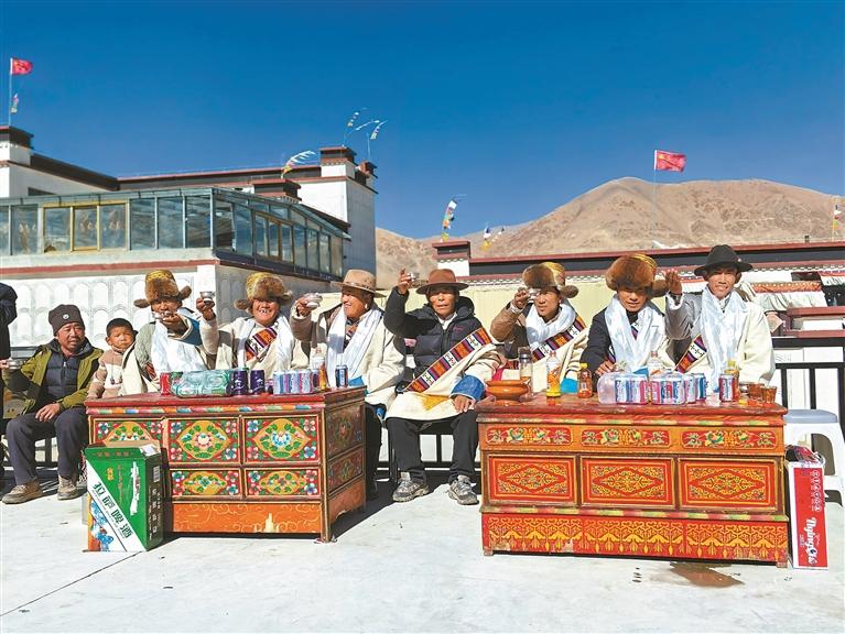 分紅當(dāng)日,定結(jié)縣郭加鄉(xiāng)乃村群眾共同舉杯,歡慶日喀則農(nóng)事新年。本報記者 楊子彥 馬曉艷 旦增嘎瓦 攝